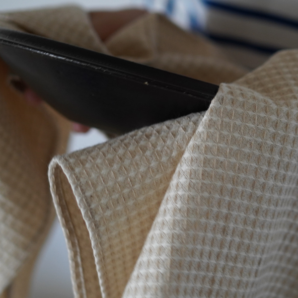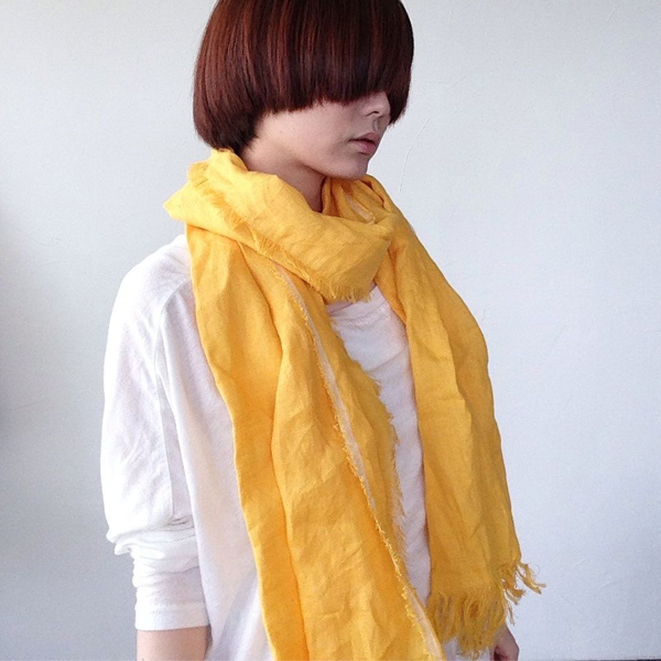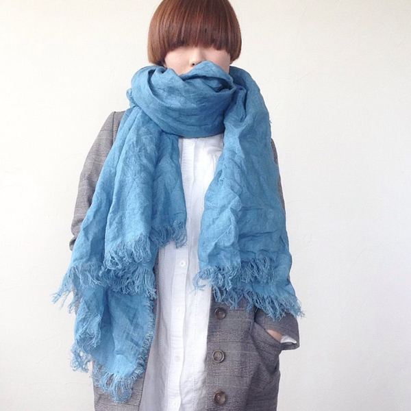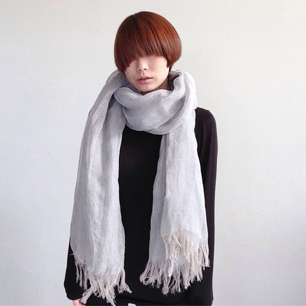 リネンストールこだわりの薄さが叶える繊細な風合いが特徴。暖かい季節にもさらりと身に着けられるストールです。