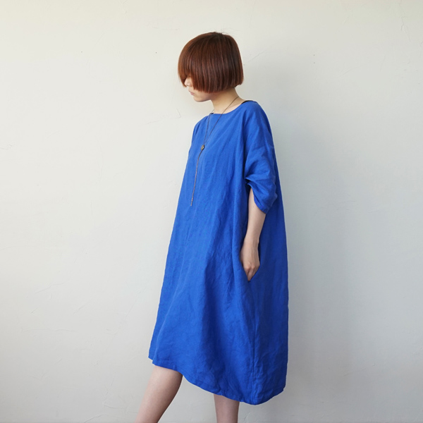 (ミシン縫製)直線は自然界にはない、人間にしか生み出せないものです。そこで、人の手(人工)=直線、リネン=自然と定義。リネン生地とほぼ直線で構成されたパターンで、人間と自然の共存を表現した服を製作するブランドです。